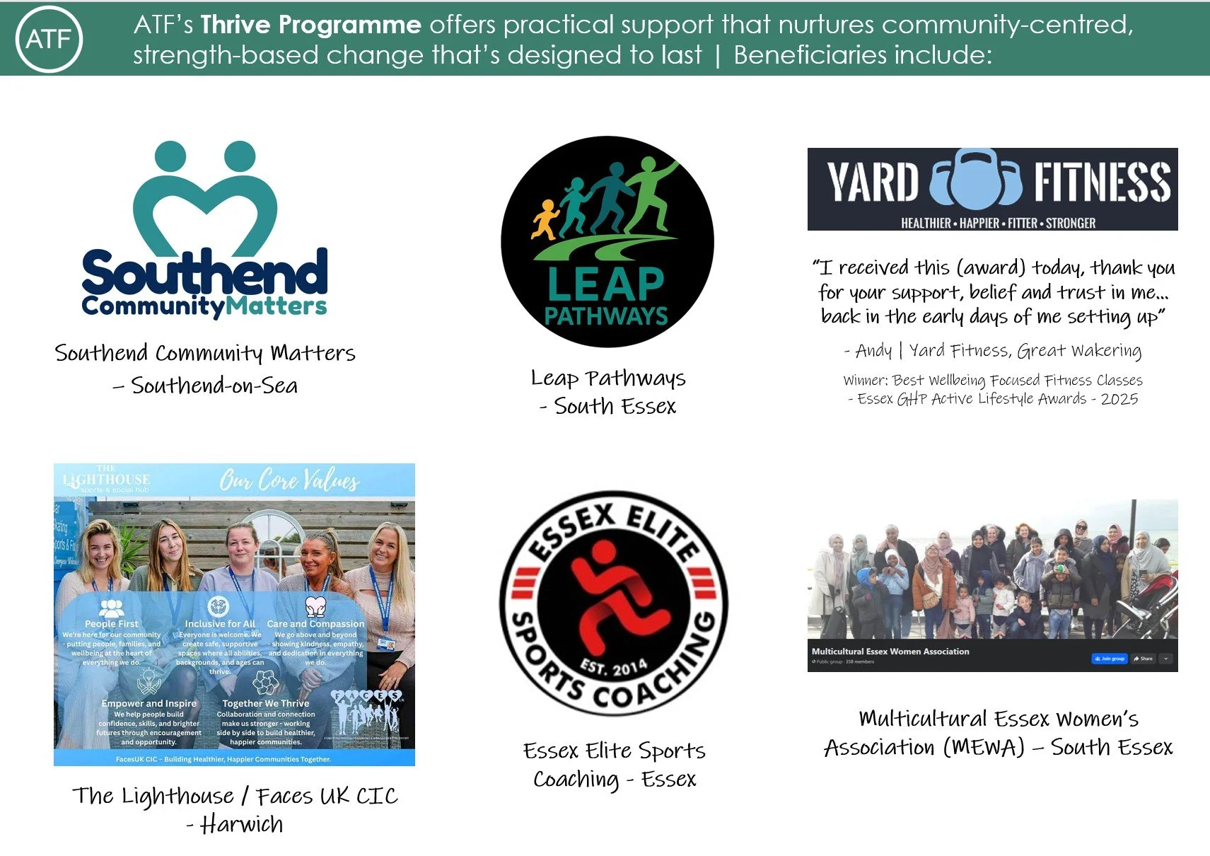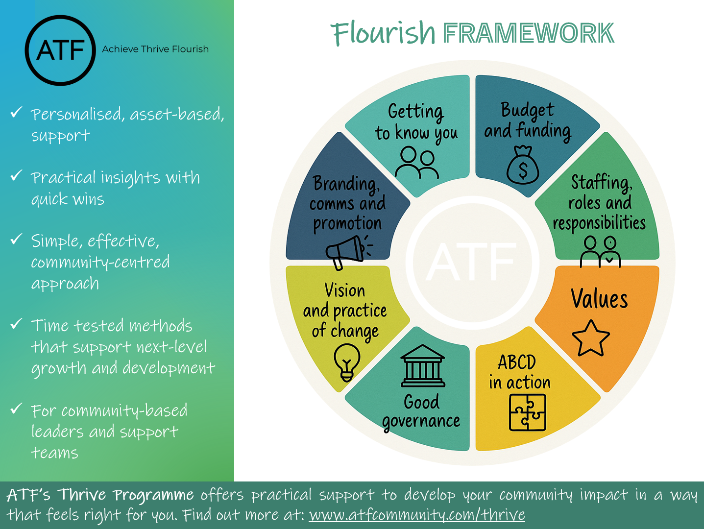 ATF’s Thrive Programme offers practical support to develop your community impact in a way that feels right for you. Our approach is shaped by real experience and grounded in what we’ve learned from working at the grassroots.